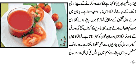 ٹماٹر کا جوس انرجی ڈرنک سے بہتر ہے